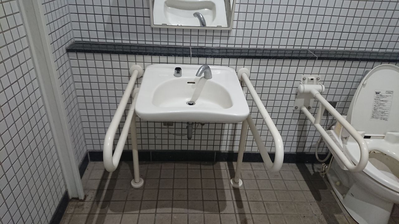2009年前後にできたと思われるトイレですが、蛇口が手動です。そして洗面所付近はごみの放置があり汚いです。