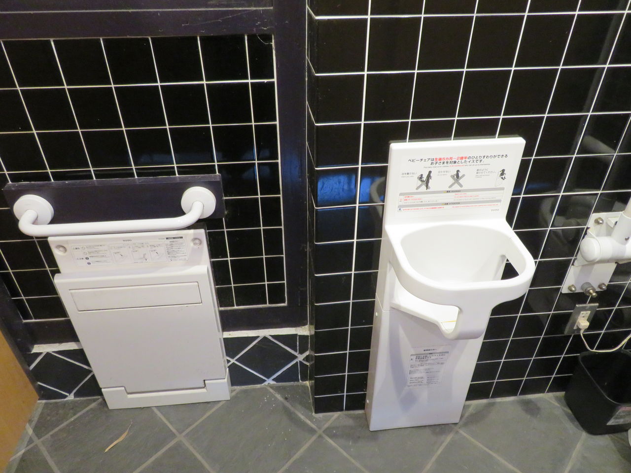 多機能トイレ内にはベビーシート(TOTOのYKA15R)とフィッティングボード(TOTOのYKA40)があります。