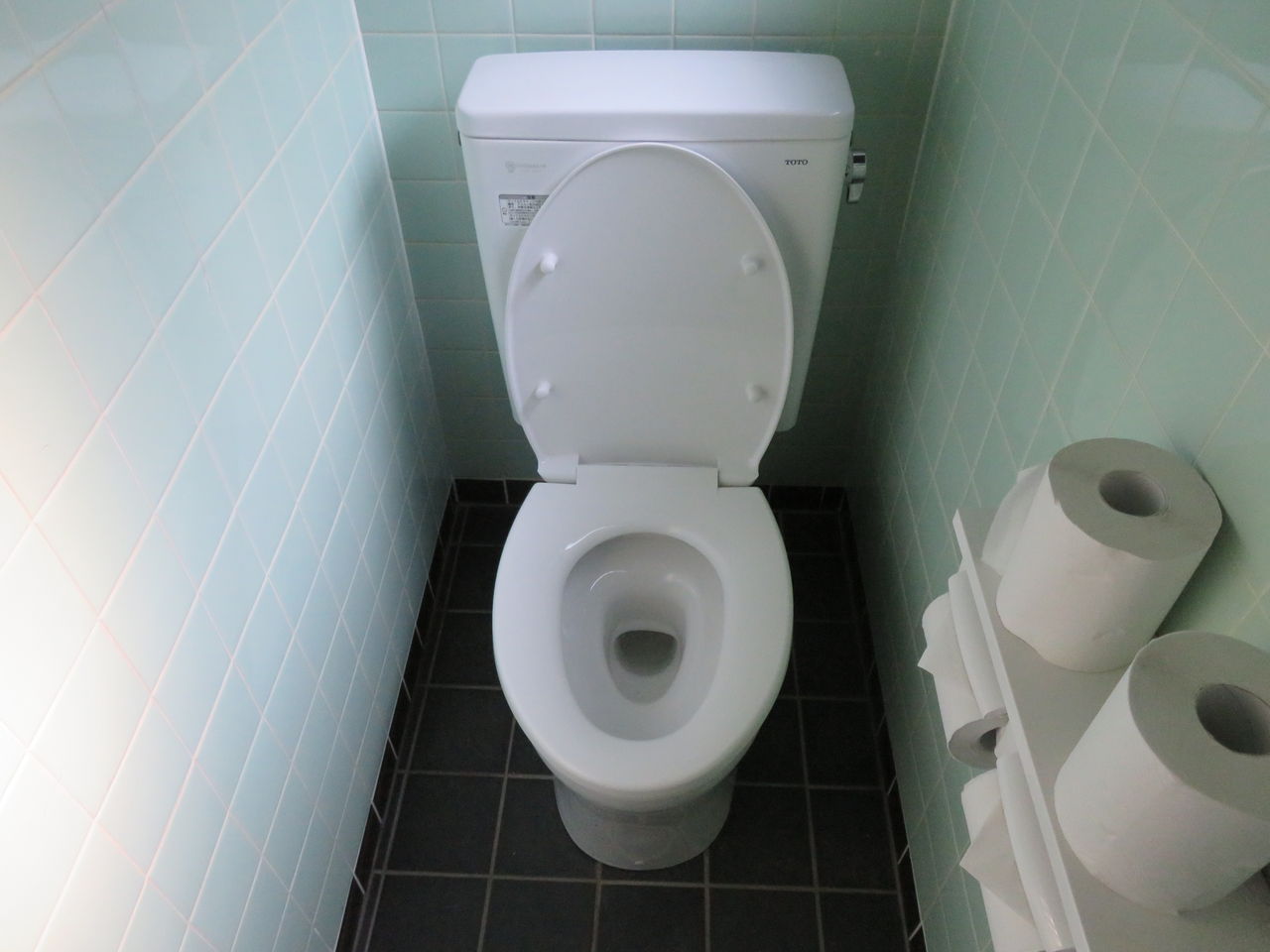 大便器は洋式1室です。TOTOのCS497BD(便器)+SH596BAYR(ロータンク)です。
