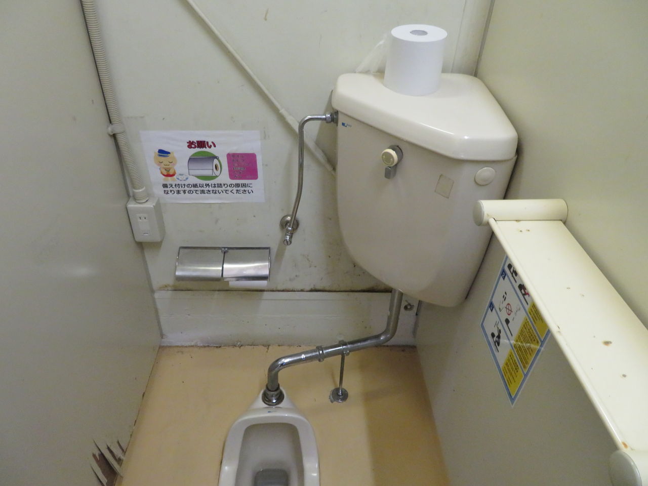 男女別にあります。男性用トイレは手洗い場(掃除用流しSK322)の隣にあります。