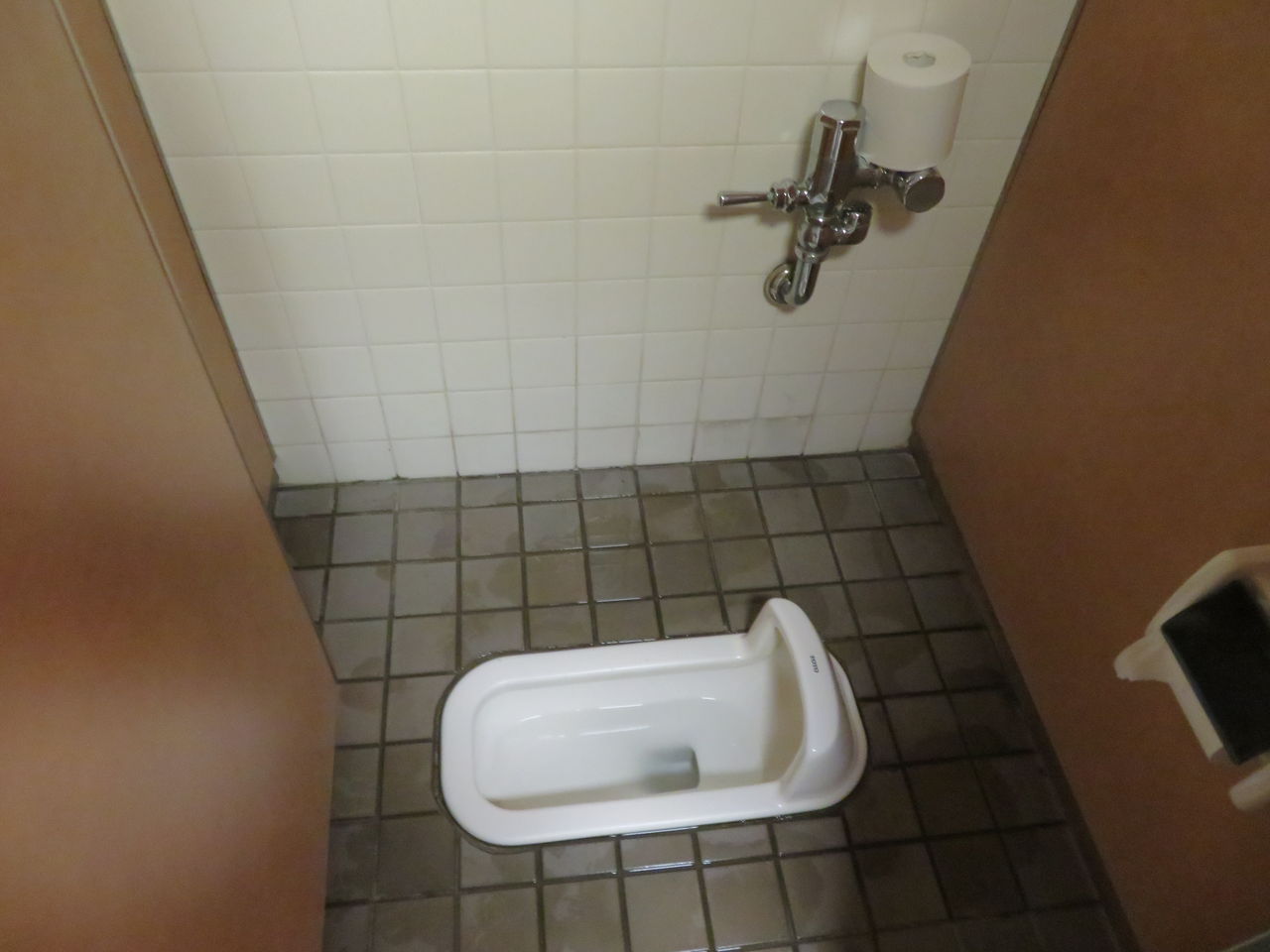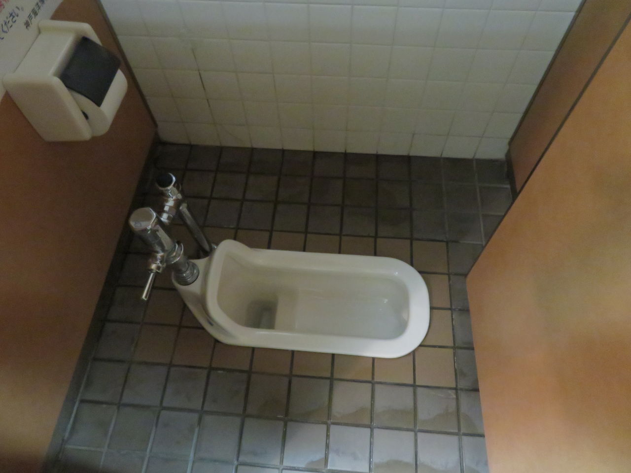 洋式個室は照明が個室内にあり、洗浄装置もセンサーに変更されているのに対して和式個室は室内が薄暗くて洗浄装置も押し棒式フラッシュバルブのままになっています。