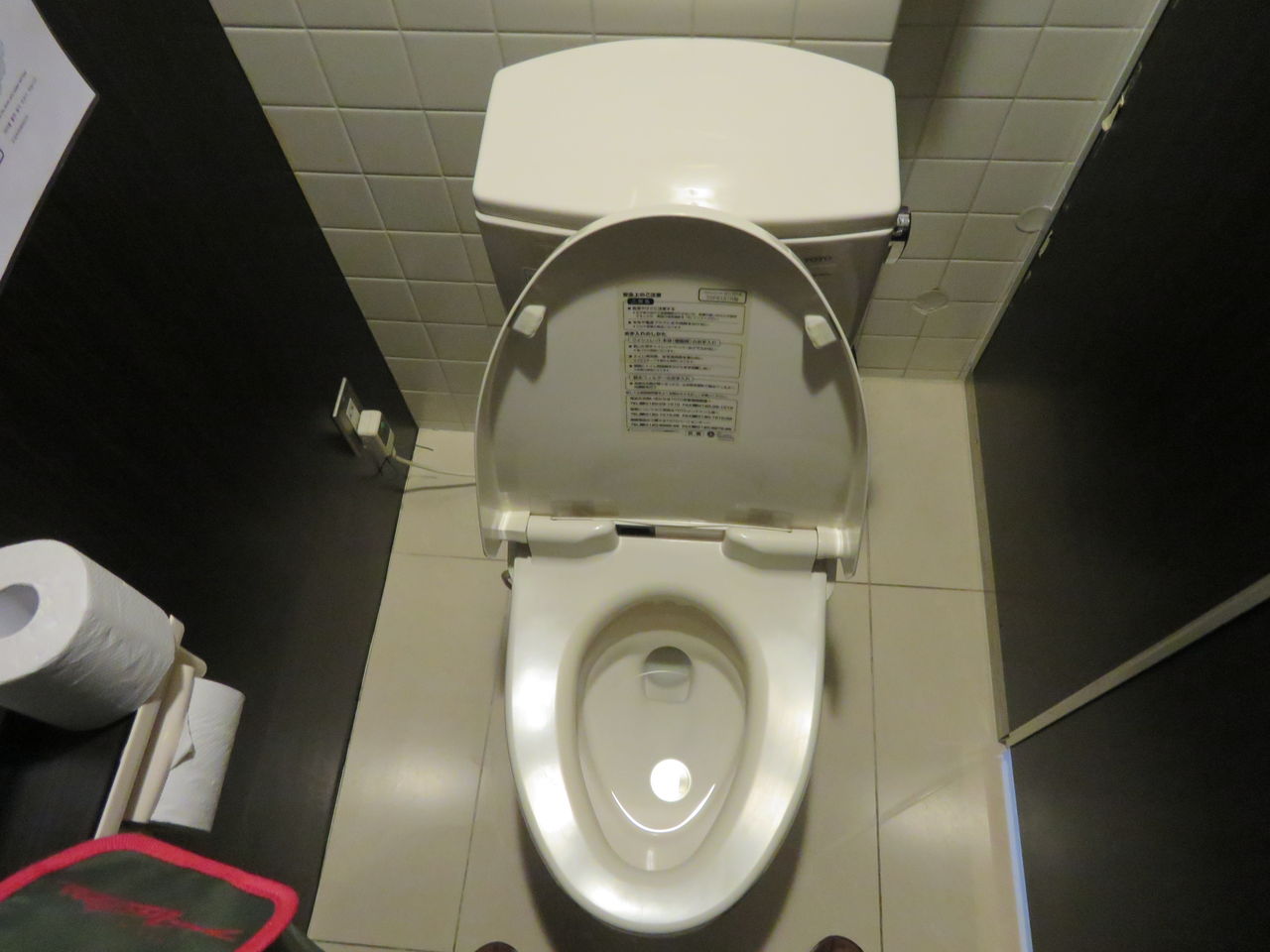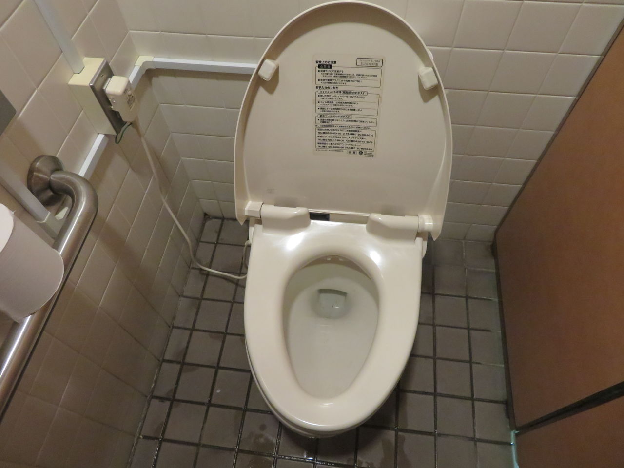 一番手前の個室は洋式です。TOTOのC48SRです。便座はTOTOウォシュレットS1(TCF6121R)です。