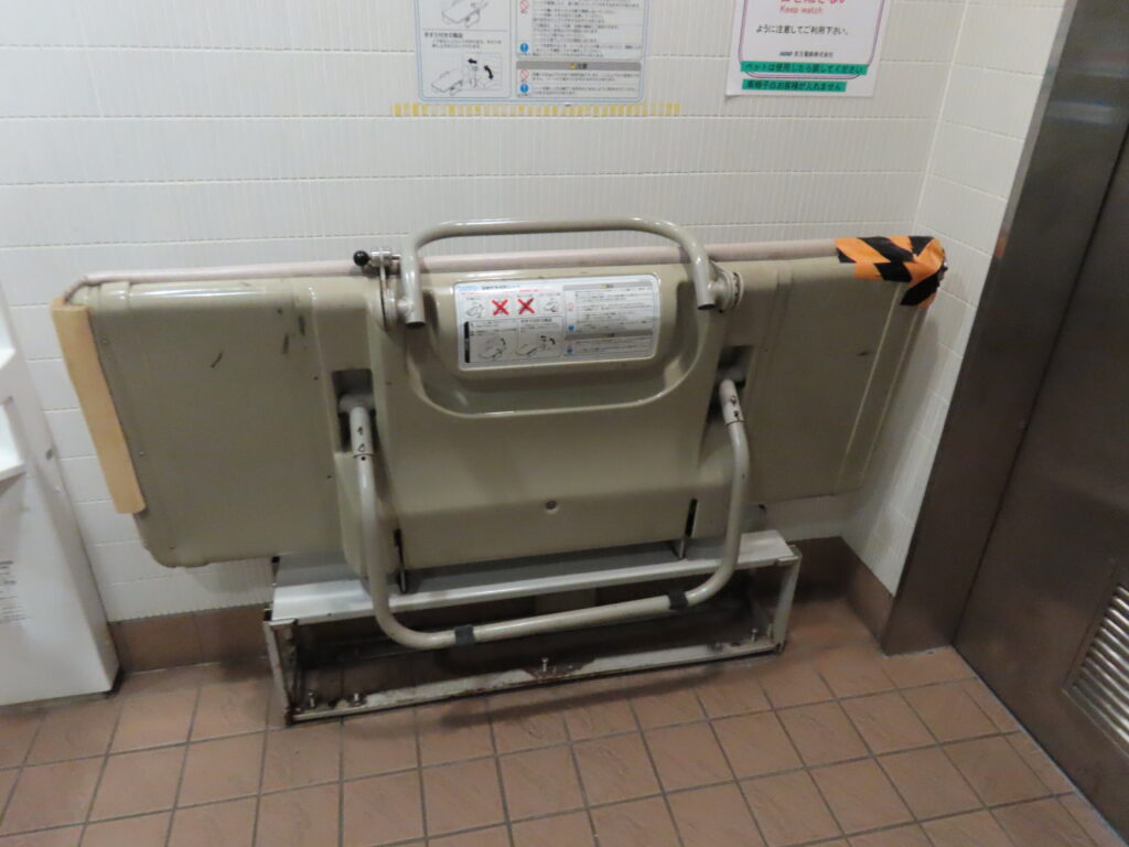 京王は2007年くらいから別置きオストメイトを本格的に採用しました。隣を走る小田急は2002年から別置きオストメイトを本格的に採用しました。あとこのトイレはそろそろ改修されるかもしれませんね。