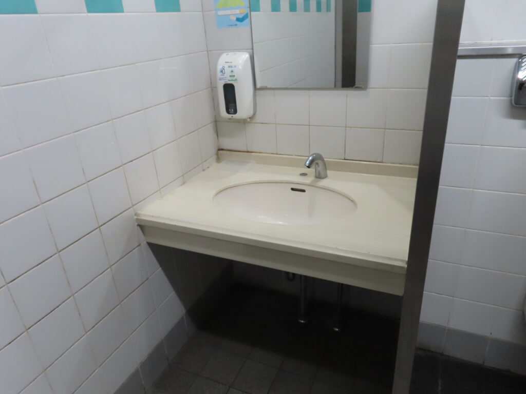 結構古いトイレです。1995年~1996年ごろに20m5両編成の電車導入に伴ってホームの延伸と駅舎の移設が行われたようですが、このトイレはちょうどその時にできたものではないかと思われます。30年近く経年しており、井の頭線の駅としては最も古いトイレとなっています(改札内にトイレがない駒場東大前駅を除く)。