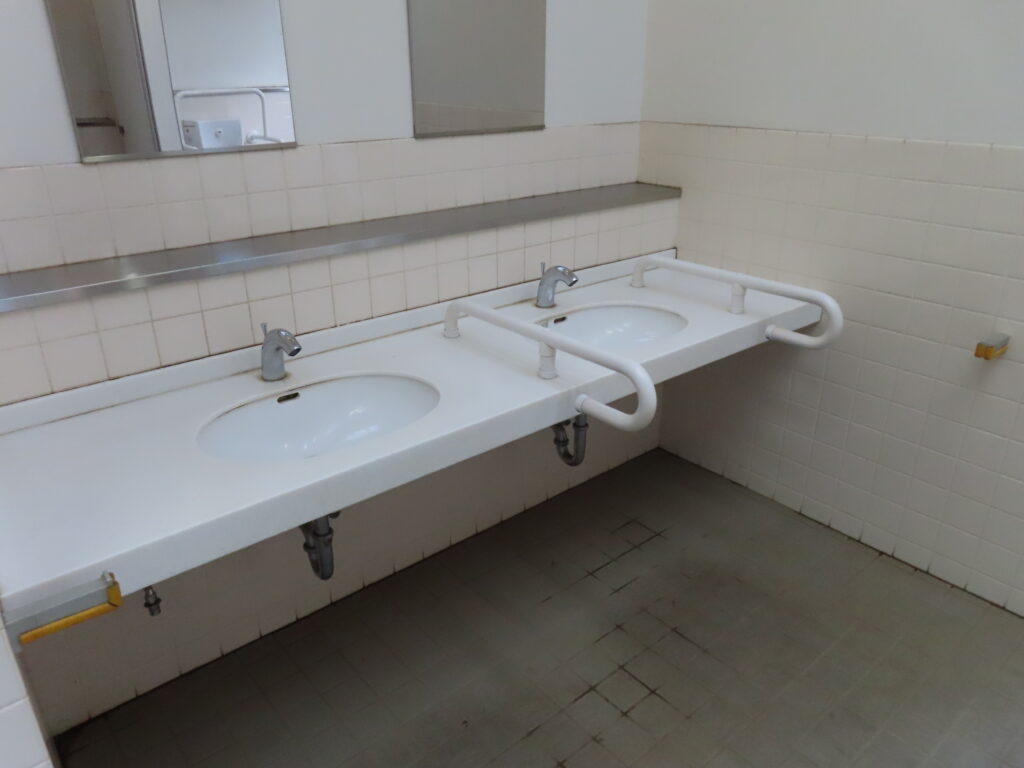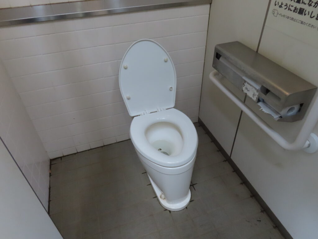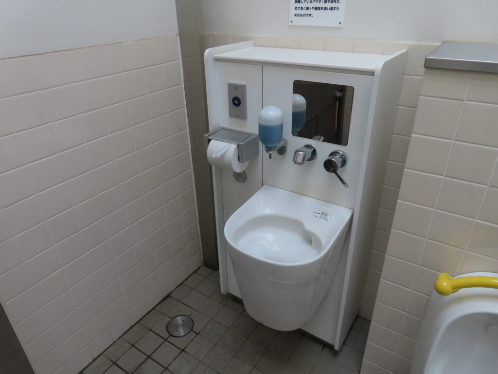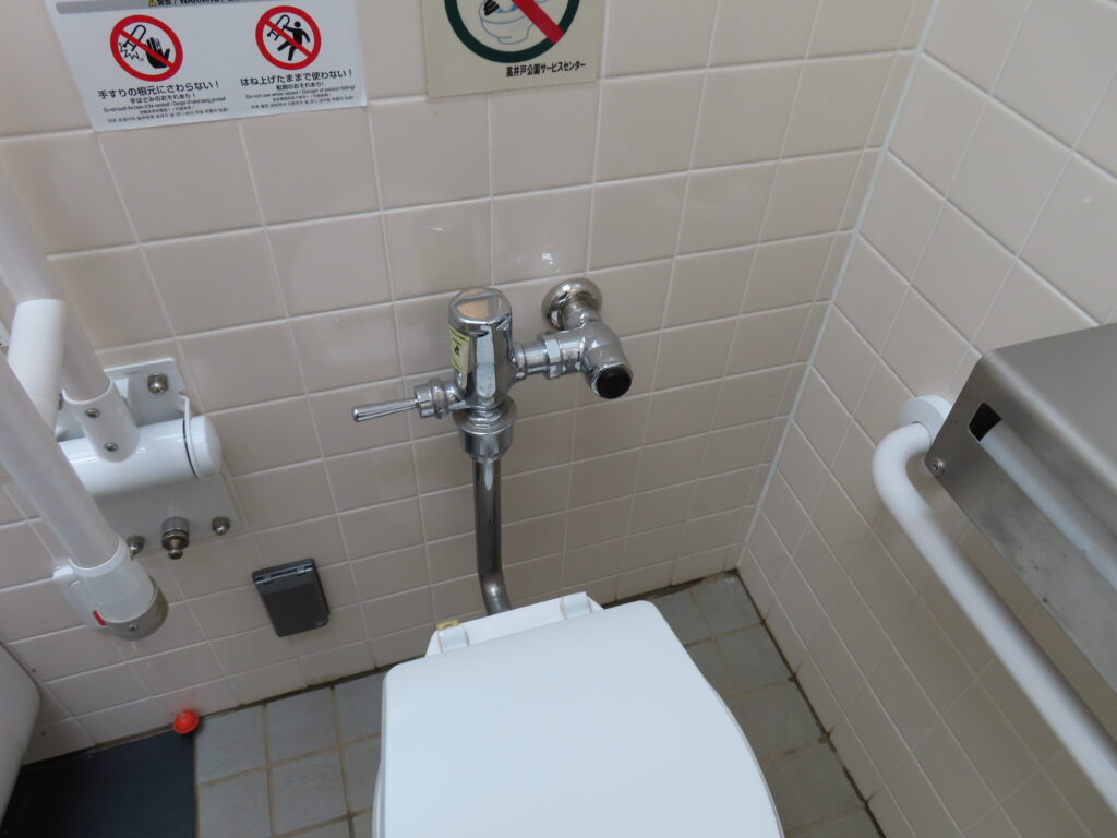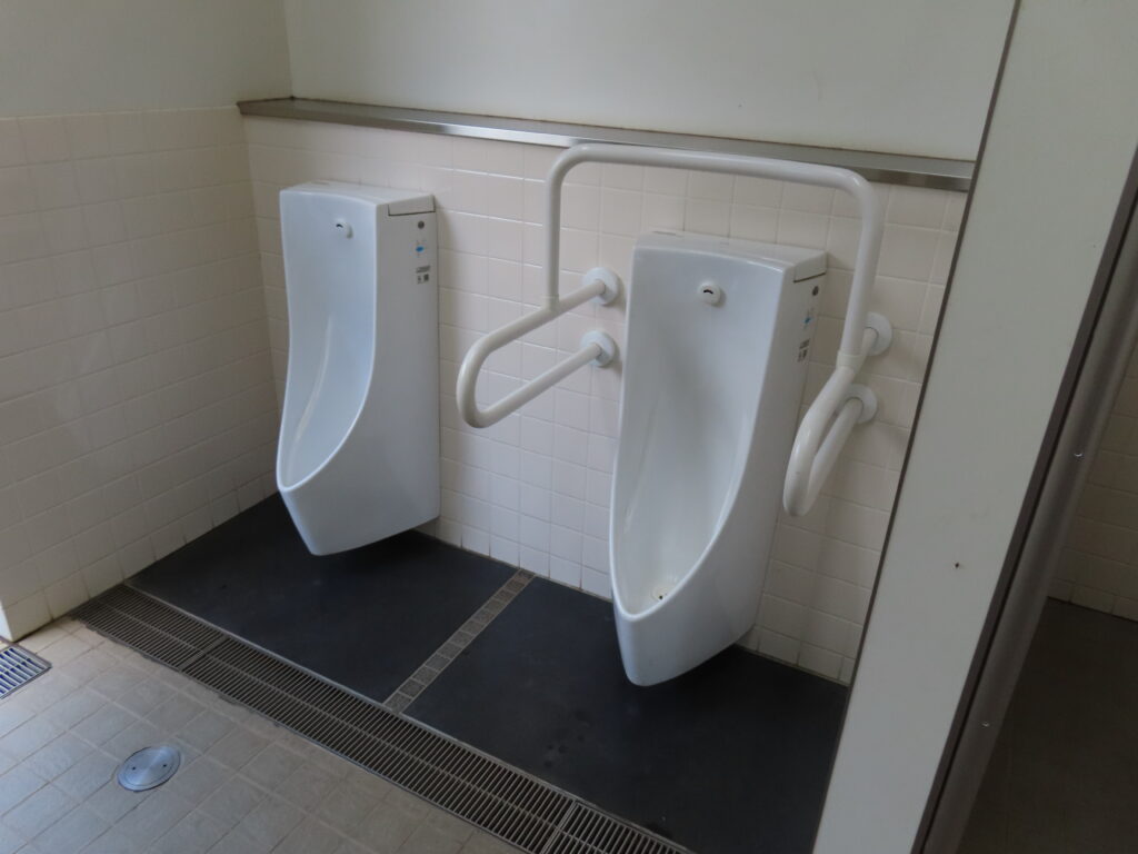高井戸公園では男性用トイレで唯一の和式便器になります。すでに新規物件では洋式便器が圧倒的に多く採用されていた2020年に竣工したトイレですが、和式便器が設置されました。都立公園では園内のトイレで最低1室は和式便器が残している場合が多いですが、ここもそういうことでしょうか。