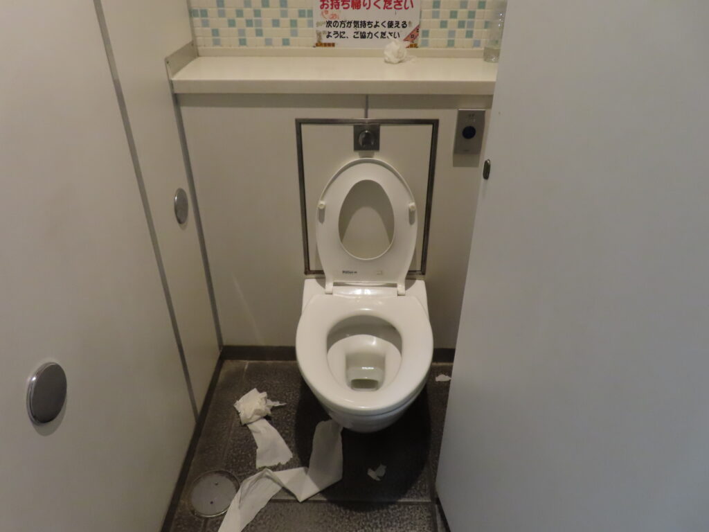 設備的には悪くないですし、臭くて近寄りがたいわけでも使えないほど汚いわけではありません。清掃の仕方は問題なさそうです。早朝に訪れたからこんな状況になっていて、日中はもうちょっとまとも(だと思いたい)であるのかもしれませんが、トイレットペーパーが散乱しているのはまだしも普通はごみを手洗場に捨てたりはしません。とにかく深夜帯に利用する人のマナーが終わっています。
