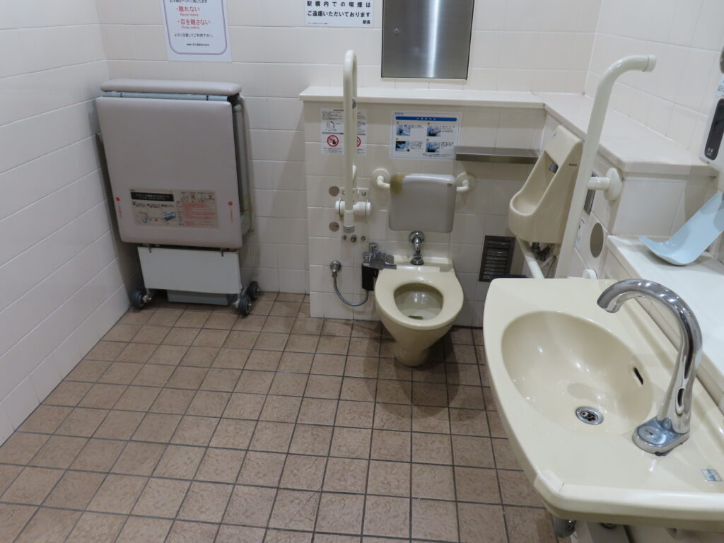 かつてはホーム上にトイレがあったようですが、2006年ごろに行われた駅改良工事の際に現在の場所(橋上駅舎内)に移転したようです。