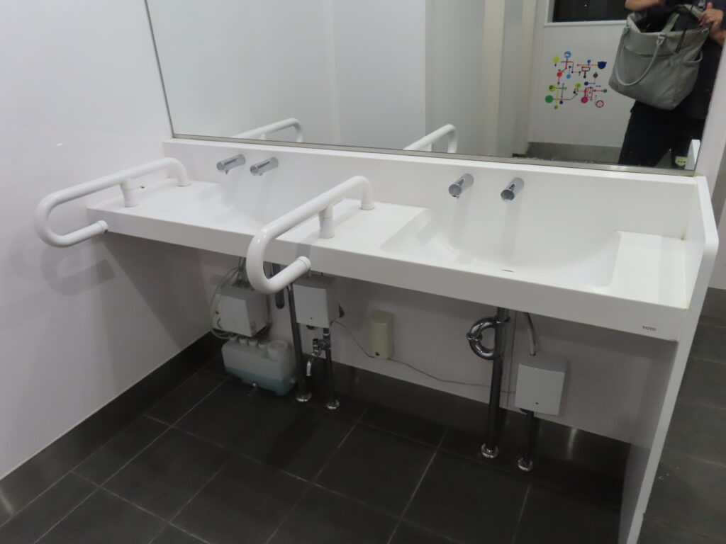多機能トイレにもコラボレーションデザインが施されています。