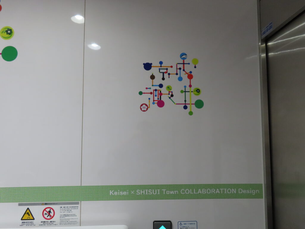 コラボレーションデザインは路線図と駅名の漢字を全体のモチーフとし、各所に酒々井町のシンボル「町の木:梅、町の花:水仙、町の鳥:メジロ」のアイコンを載せたものとなっています。