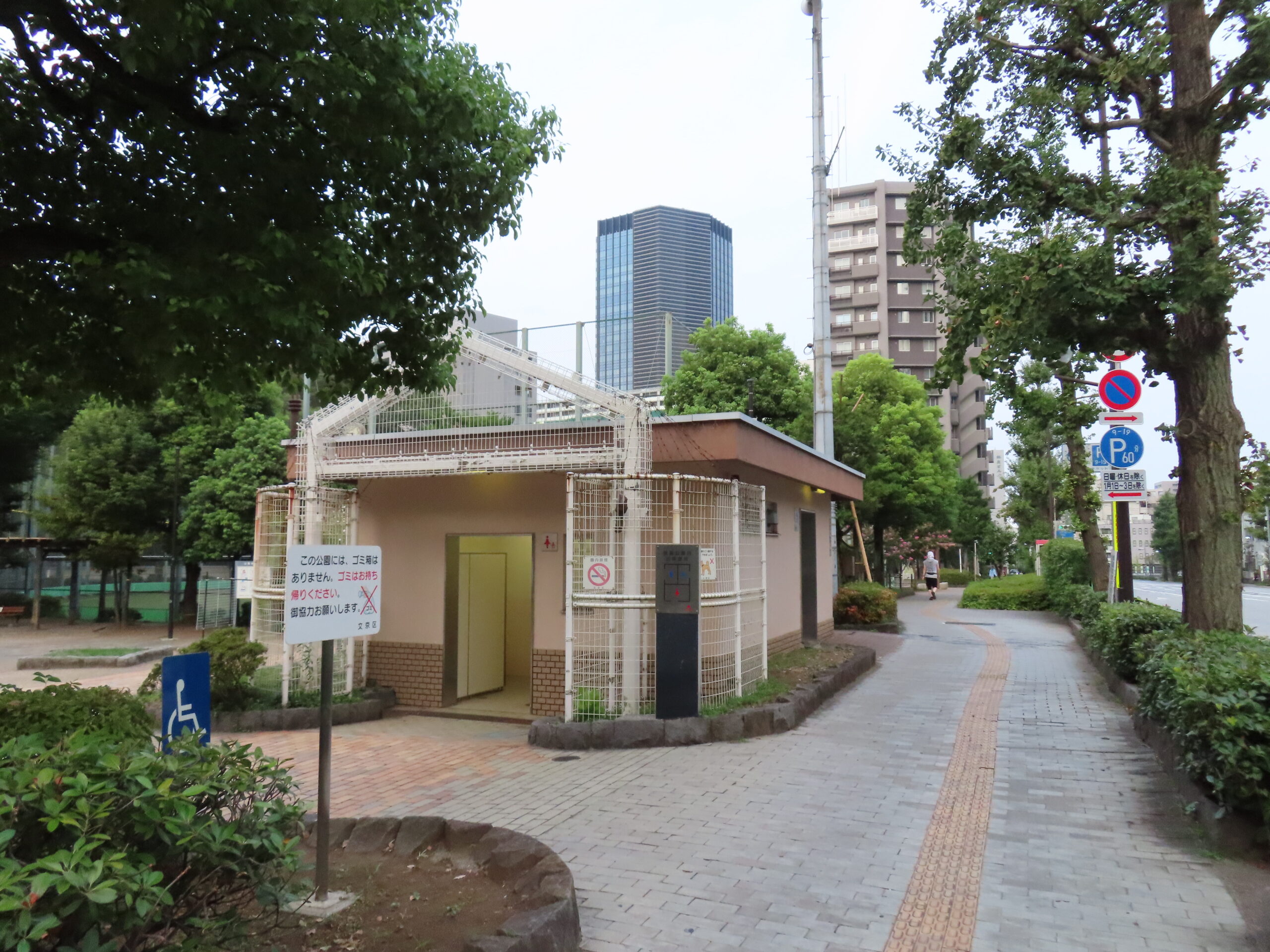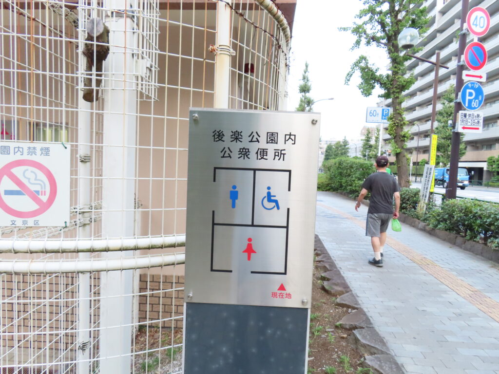 ちなみに後楽公園とこのトイレは新型コロナウイルスが猛威を振るっていたころ、一時的にPCR検査センターとして運用されていました。そのころは公園内は遊具エリアを除いて閉鎖され、トイレについても多機能トイレ以外は使えなくなっていました(男女トイレはPCR検査センター専用のトイレになっていた模様)。またPCR検査センターがあった頃は代替として仮設トイレの設置がありました(2023年4月頃に段階ではまだあったと記憶)。