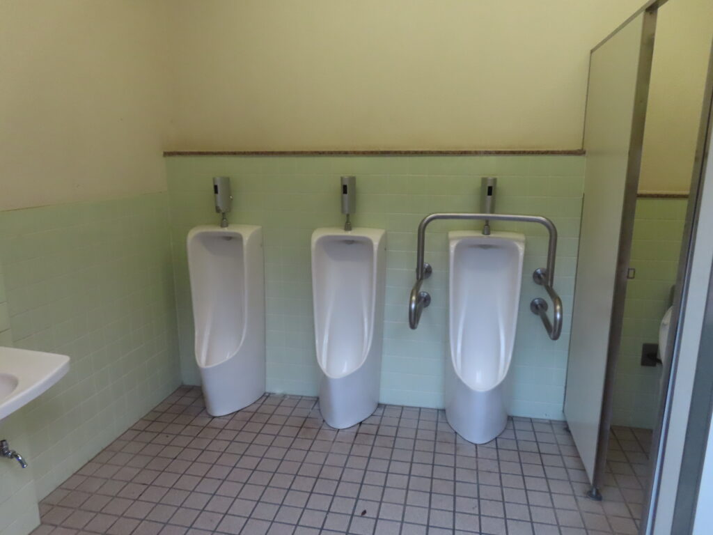 男性用トイレの面積が広くないため、外から見えやすくなっています。そういった意味では公園側に出入口があるのはよさそうです。しかしわかりにくいという難点もありますが。