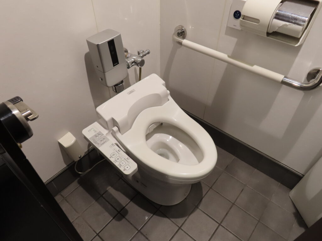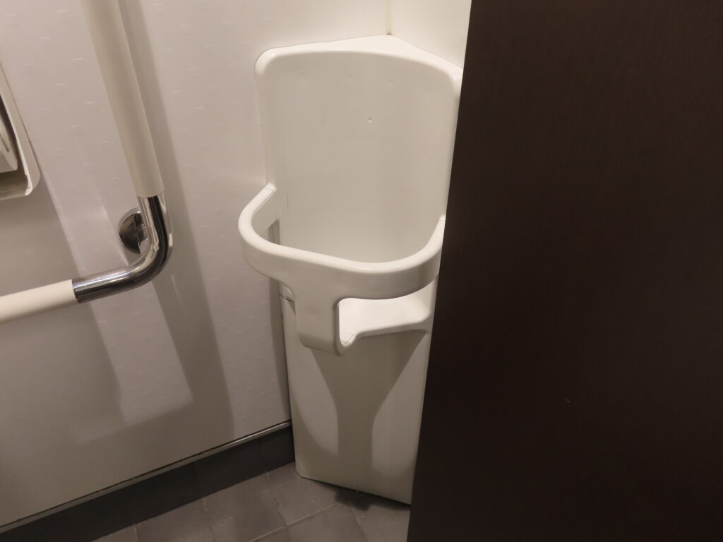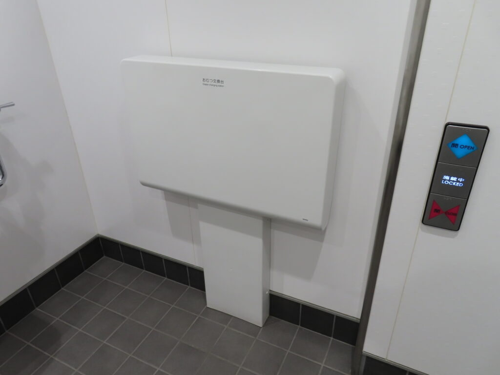 以前のトイレは改札階とホーム階の間(M2F?)にあった上に階段でしか行くことができなかった(多機能トイレは当時はなかった)のですが、2014~2015年ごろに現在の場所に移転しました。移転してからは以前よりも使い勝手が向上しています。