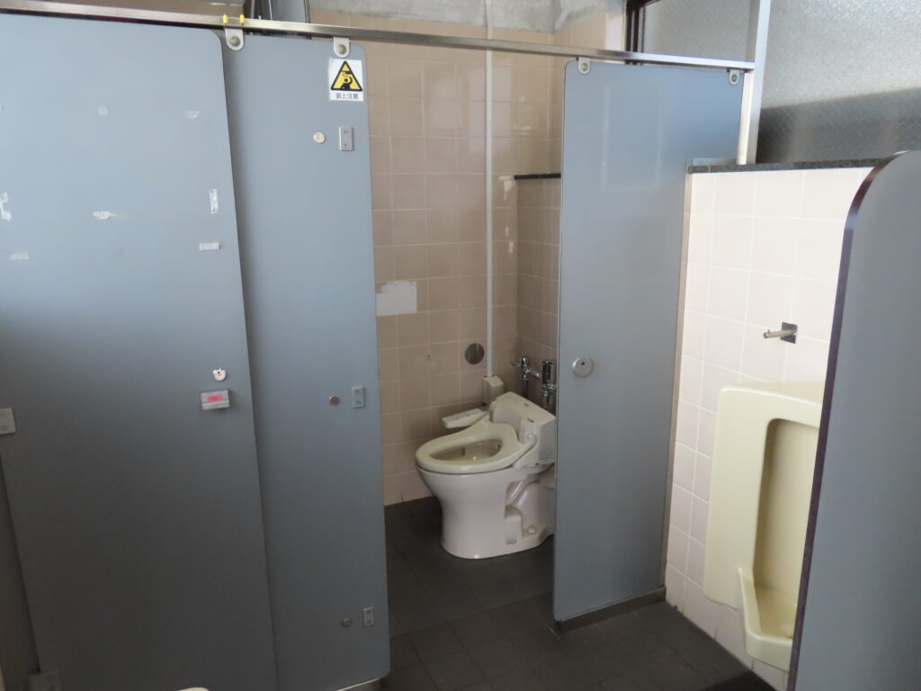 ちなみに大便器個室のブース材は180㎝くらいしかありません。ちょっと背の高い人なら覗けてしまいそうです。