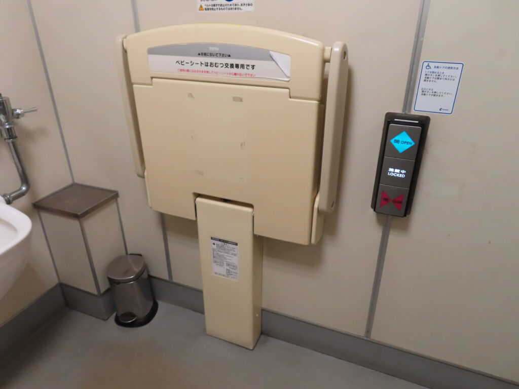 3・4番線ホームに男女トイレが、改札階(改札内)に多機能トイレがあります。