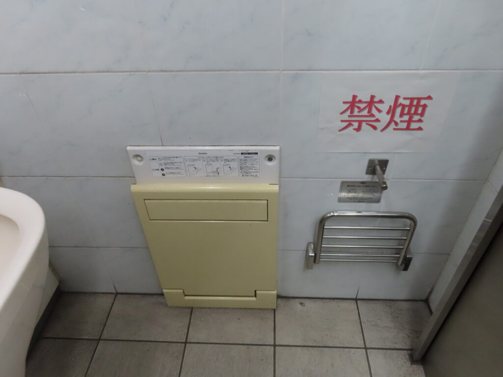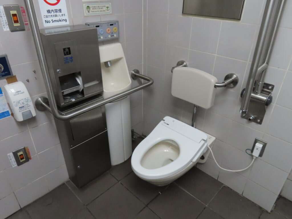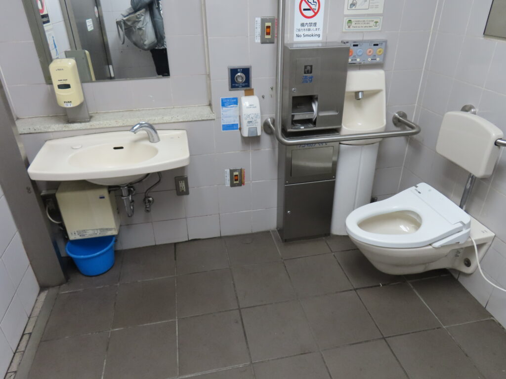 奥の個室は洋式です。洋式個室は簡易多機能仕様になっています。また簡易多機能個室ながら扉が自動になっています。