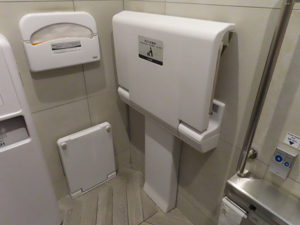簡易多機能個室内にはベビーシートとフィッティングボード、ベビーチェアがあります。