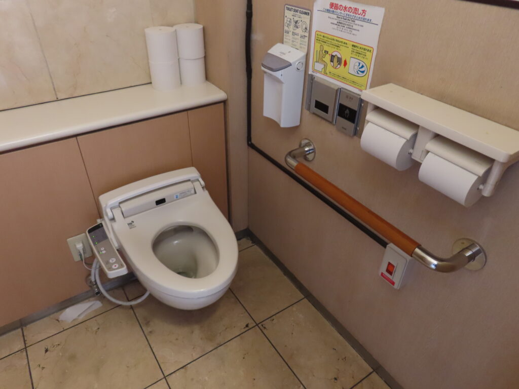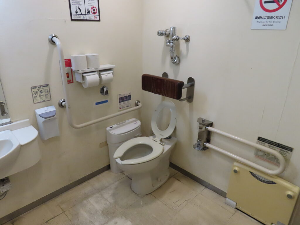 中央トイレは改修されていますが、規模が小さいです。大便器個室も1室しかないので心許ないです。