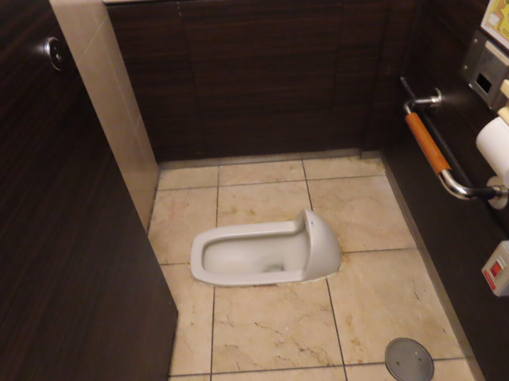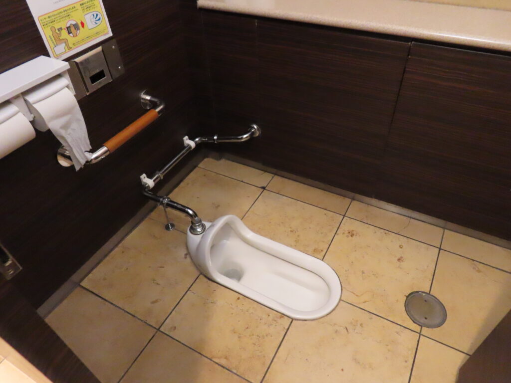 2025年12月現在、男性用トイレでは唯一の和式便器となっています。もともと男性用トイレの和式便器は数が少なく、こことB1Fに1室ずつしかありませんでしたが、B1Fについては改修工事が行われた為、和式便器がなくなりました。