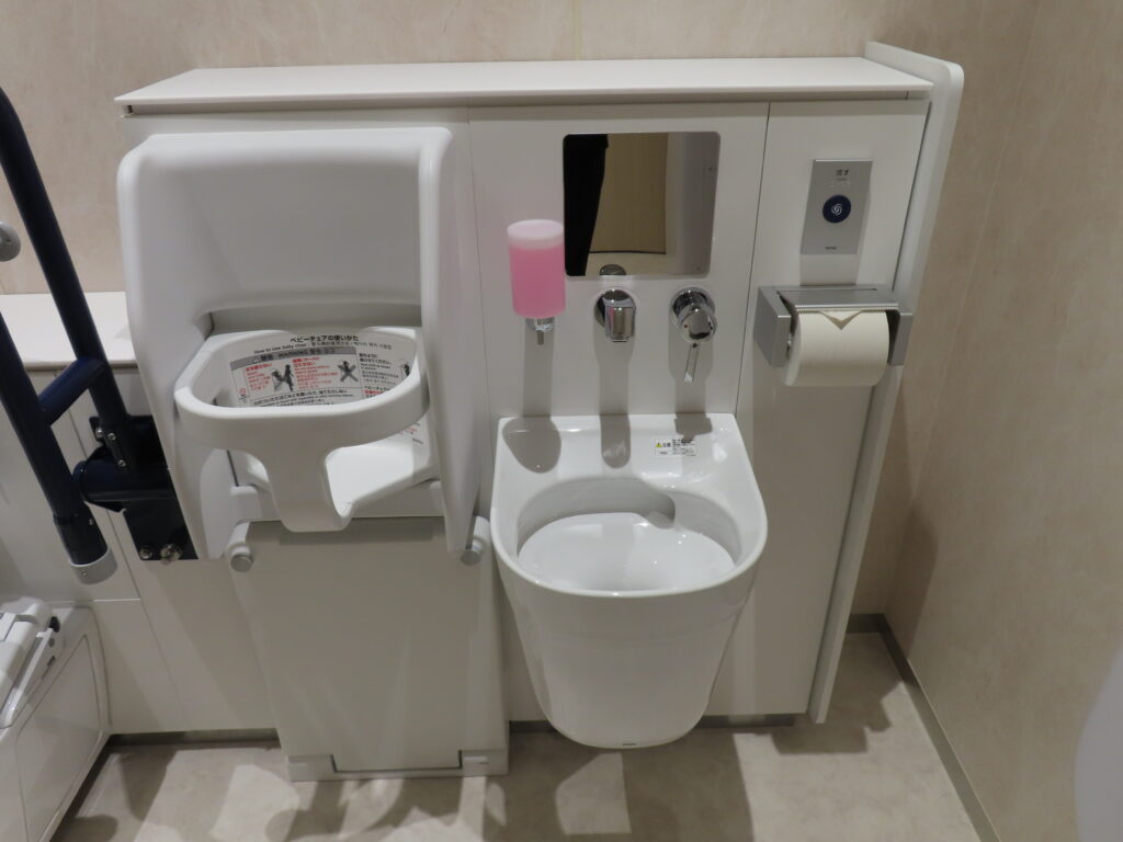 改修前の多機能トイレでは珍しくシャワートイレが設置されていましたが、15年くらい前はまだ普通便座が設置されていたと記憶しています。