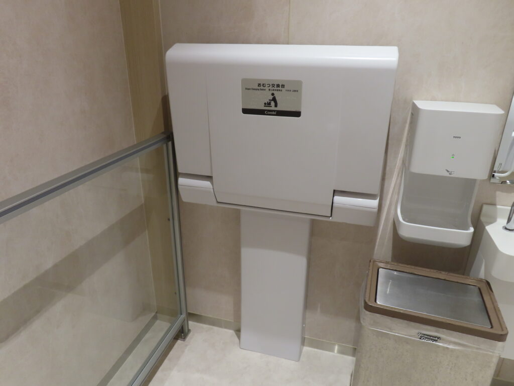 ベビーシート、フィッティングボード、ダイアパーボックス(紙おむつ専用ごみ箱)の設置もあります。