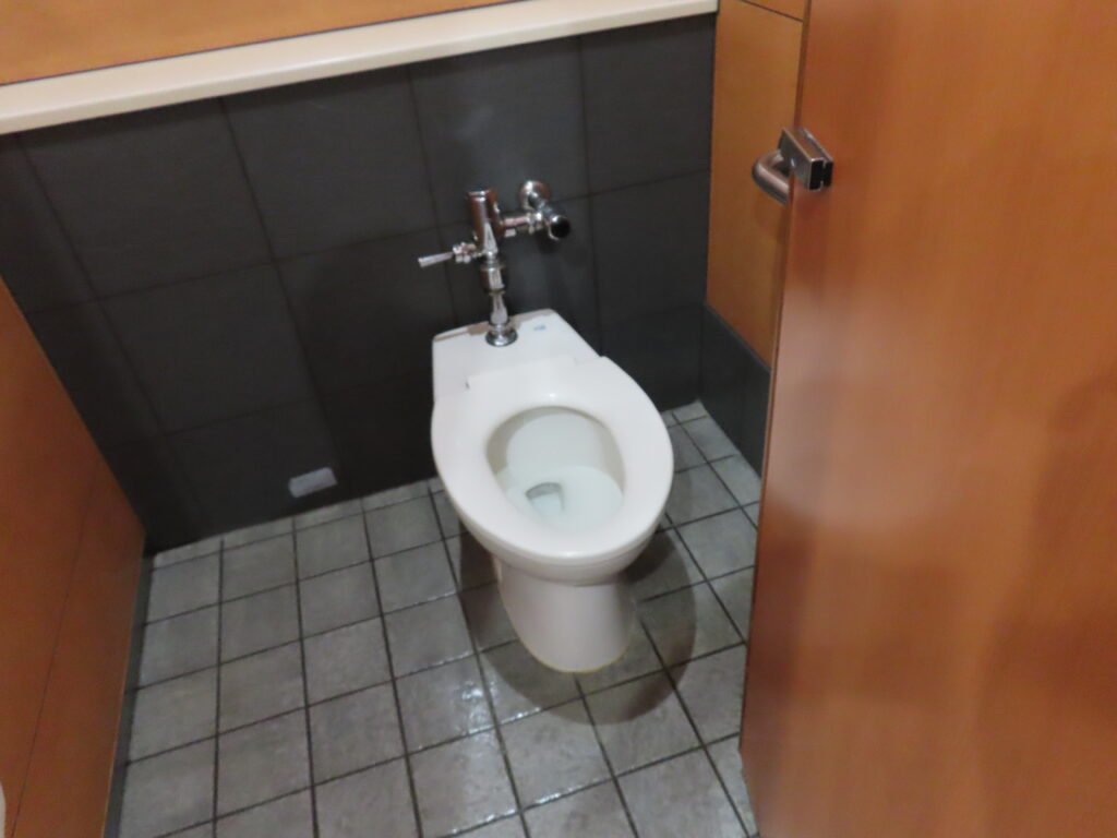 手前の個室はTOTOの「パブリックコンパクト便器・フラッシュバルブ式」CS494M(と思われる)が設置されています。