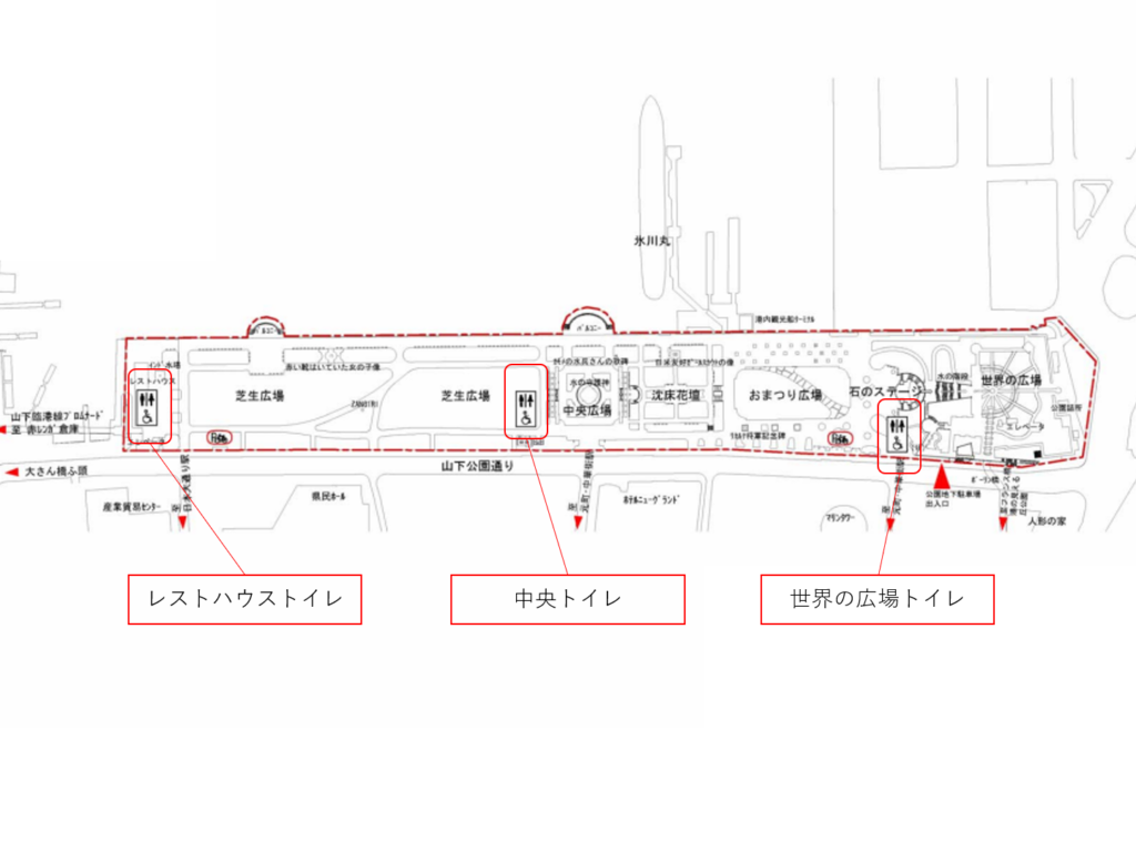 山下公園中央口、中央広場、芝生広場付近にあります。