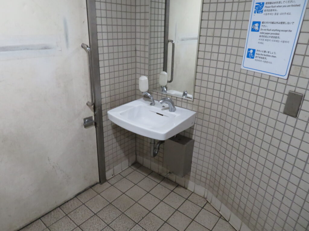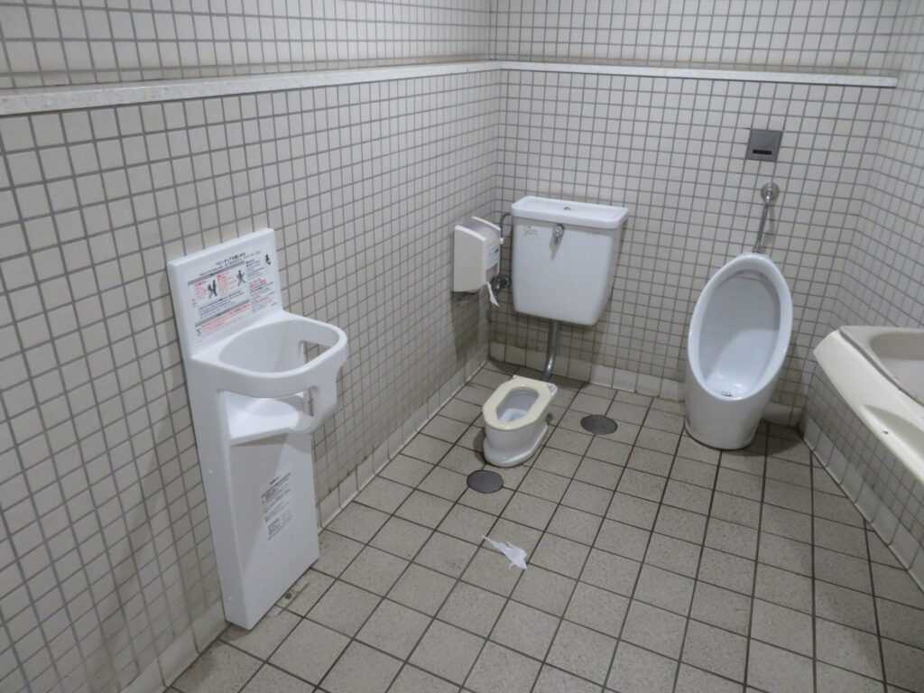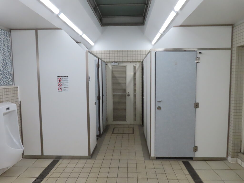 この当時と比べると手洗場や大便器個室のブース材が交換されて内装に若干手が加えられましたが、他にはこれと言って変化がありません。
