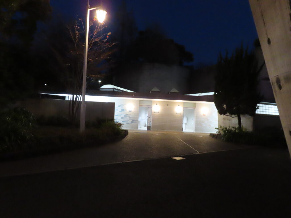 暗くなってから撮影したので少しわかりにくいですが、公衆トイレとしては比較的大きな建物となっています。