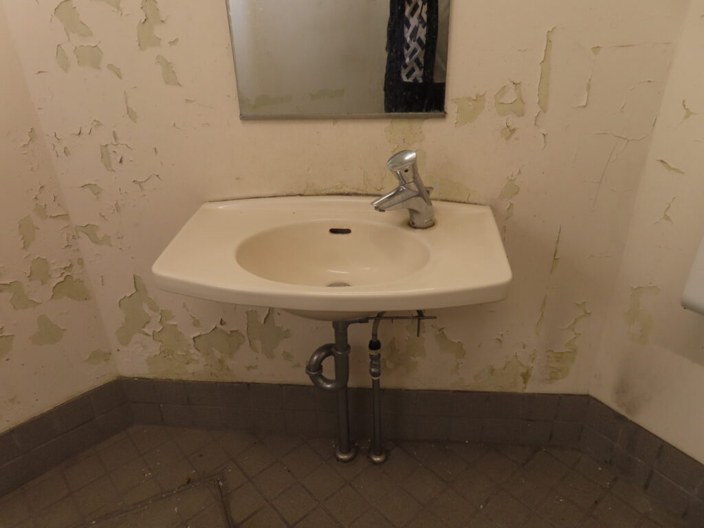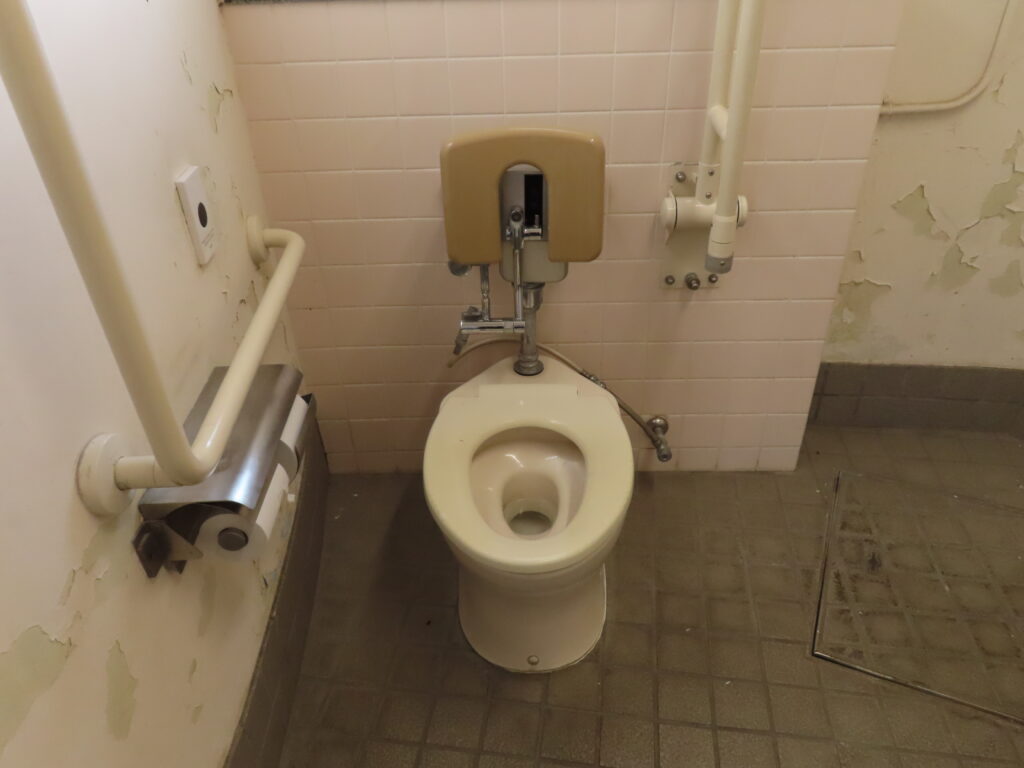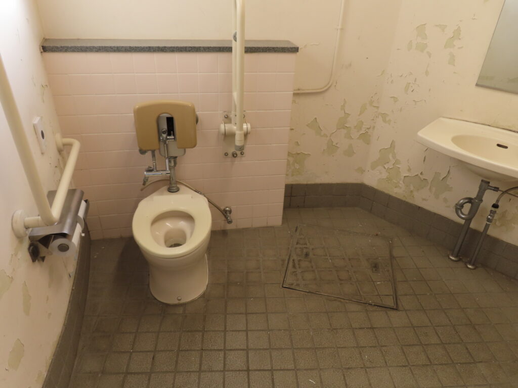 特に多機能トイレの壁面は塗料がはがれまくっています。