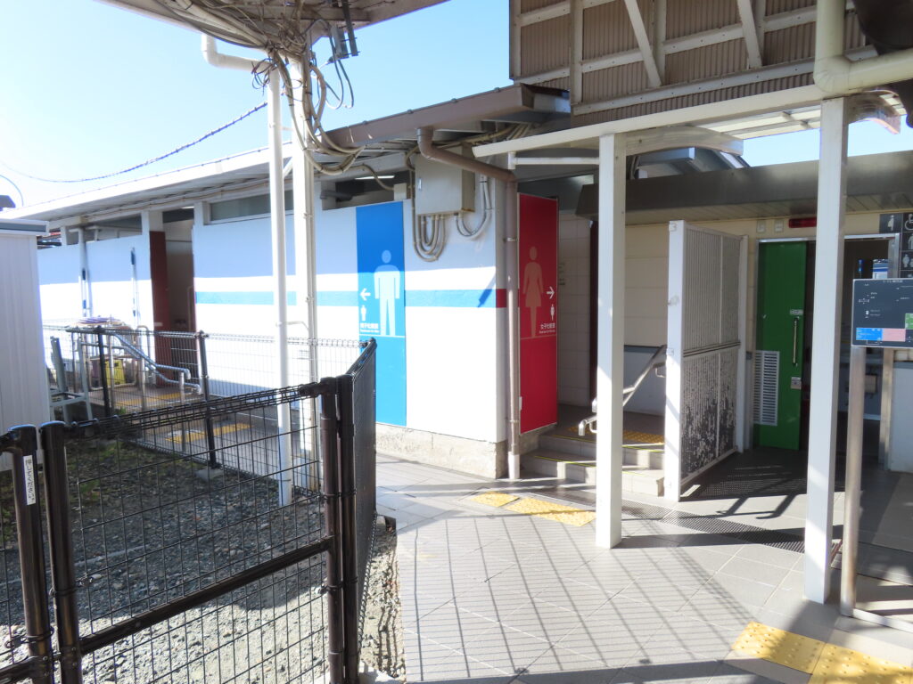 改札内のトイレと建物は同じです。改札内のトイレのちょうど裏側にこのトイレがあります。