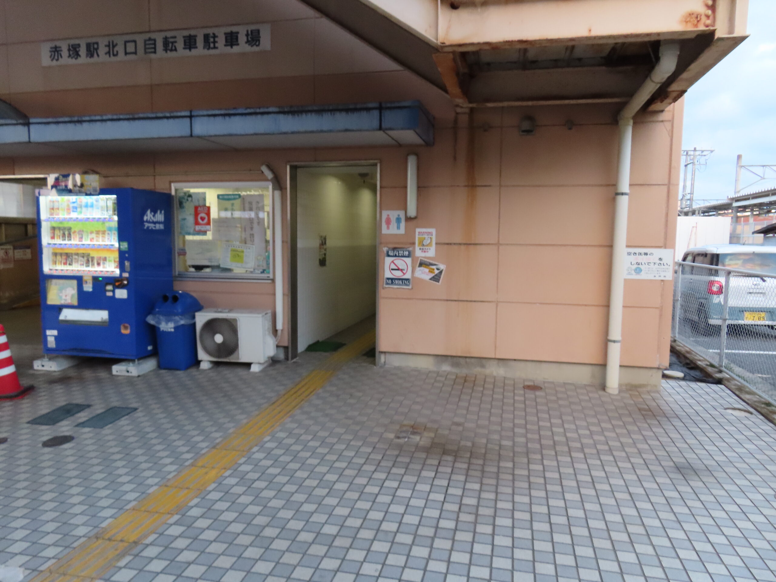 赤塚駅北口自転車駐車場1Fの右側にトイレの出入口があります。