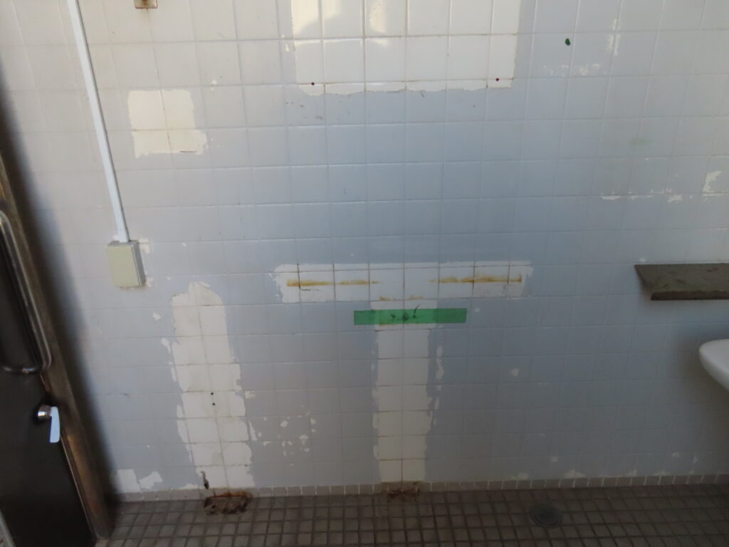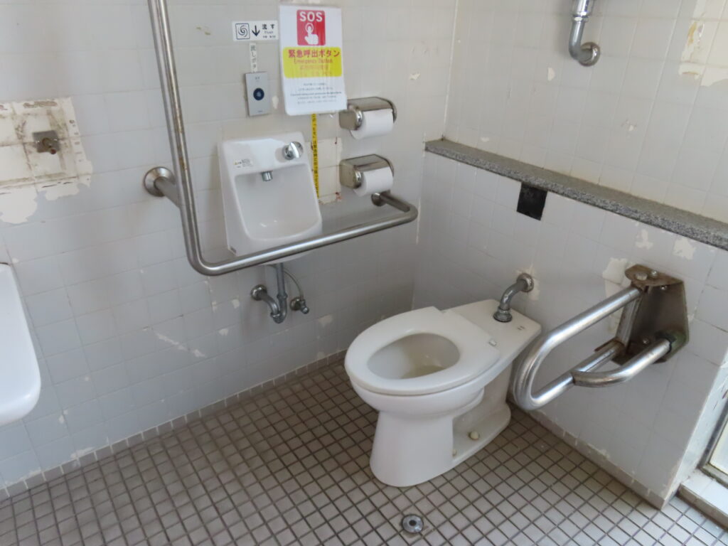 多機能トイレ内は内装がボロボロです。