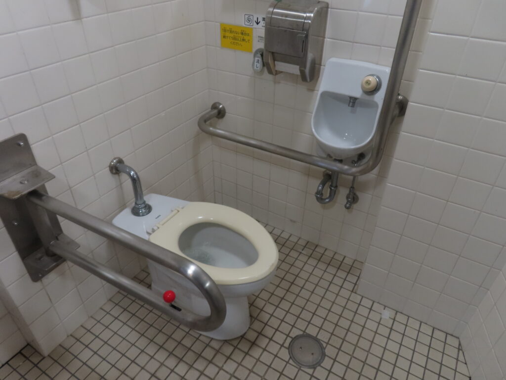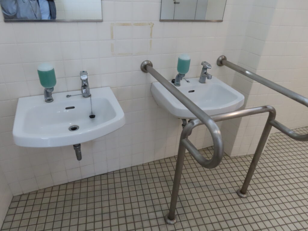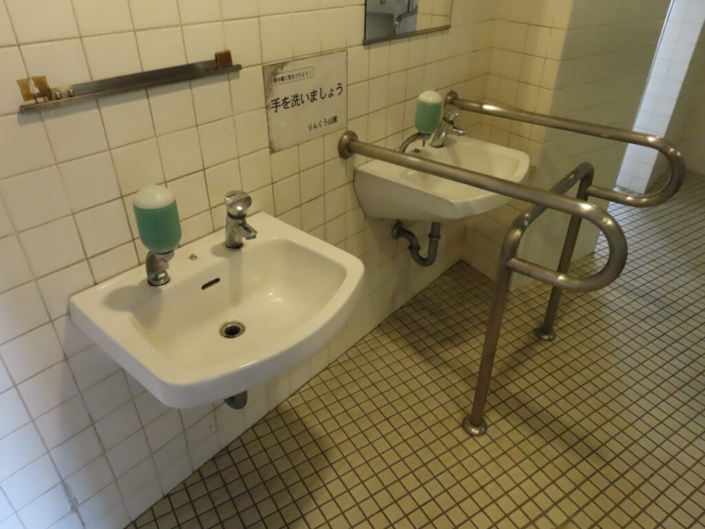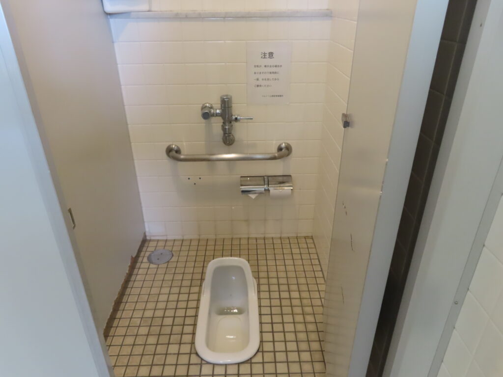 トイレは全体的に古めかしい感じがします。このトイレよりも清潔度は少し落ちますが、近隣にある第1トイレのほうが設備が充実しています(洋式便器、幼児用大便器、ベビーシート、ベビーチェアなど)。