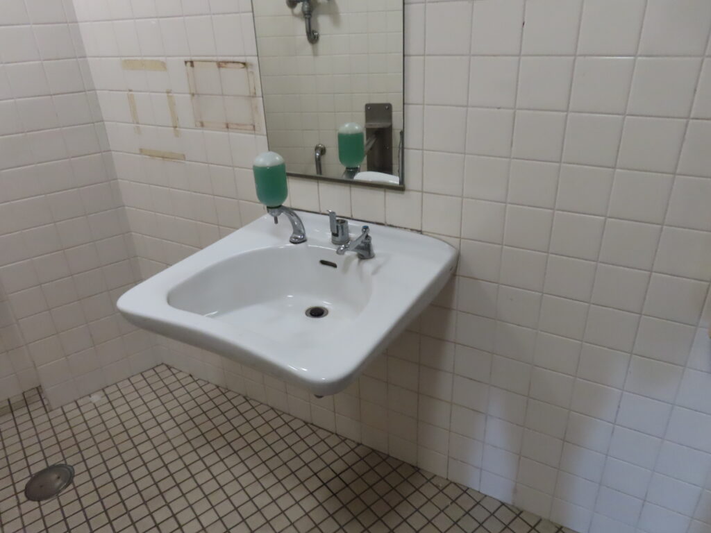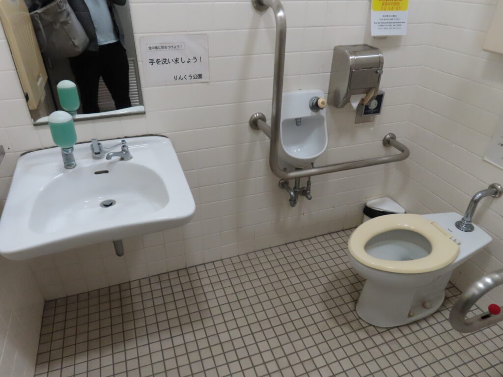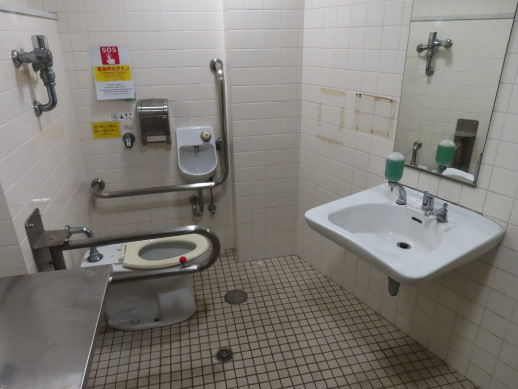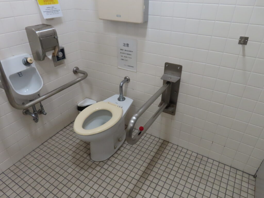 トイレは全体的に古めかしい感じがします。このトイレよりも清潔度は少し落ちますが、近隣にある第1トイレのほうが設備が充実しています(洋式便器、幼児用大便器、ベビーシート、ベビーチェアなど)。
