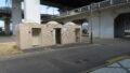 1Fのトイレは屋外に出入口があります。出入口は表側の廊下に面した場所と建物の裏側の2か所あります。なお建物の裏側からだと出入口に階段があります。