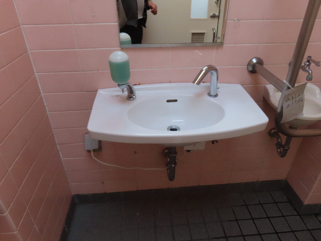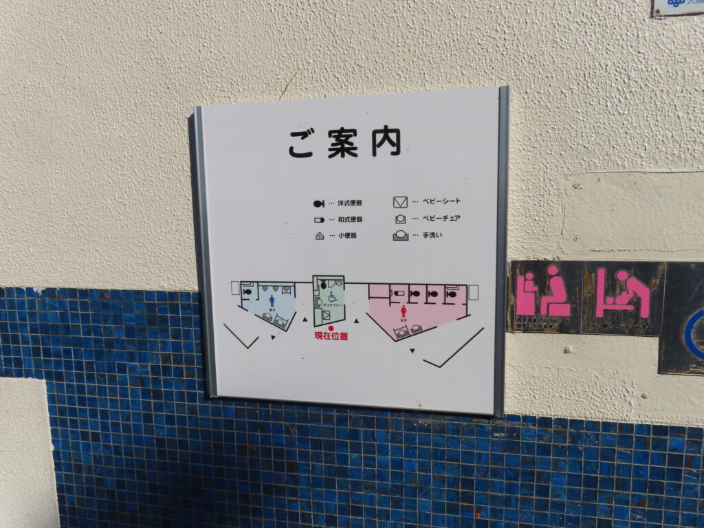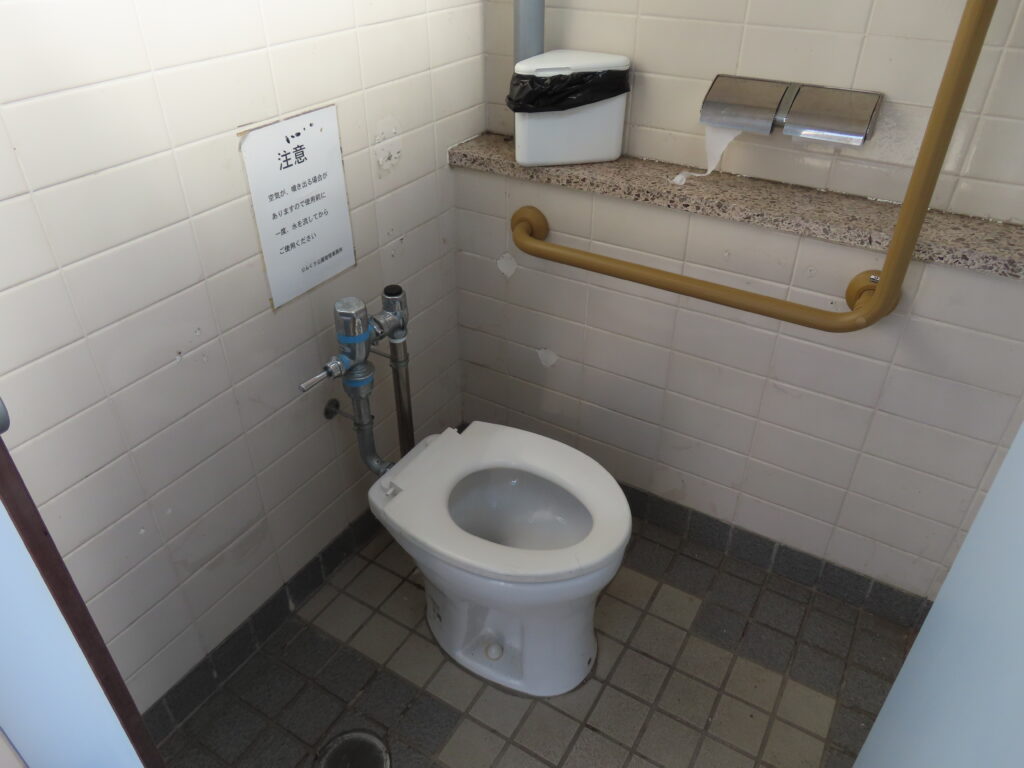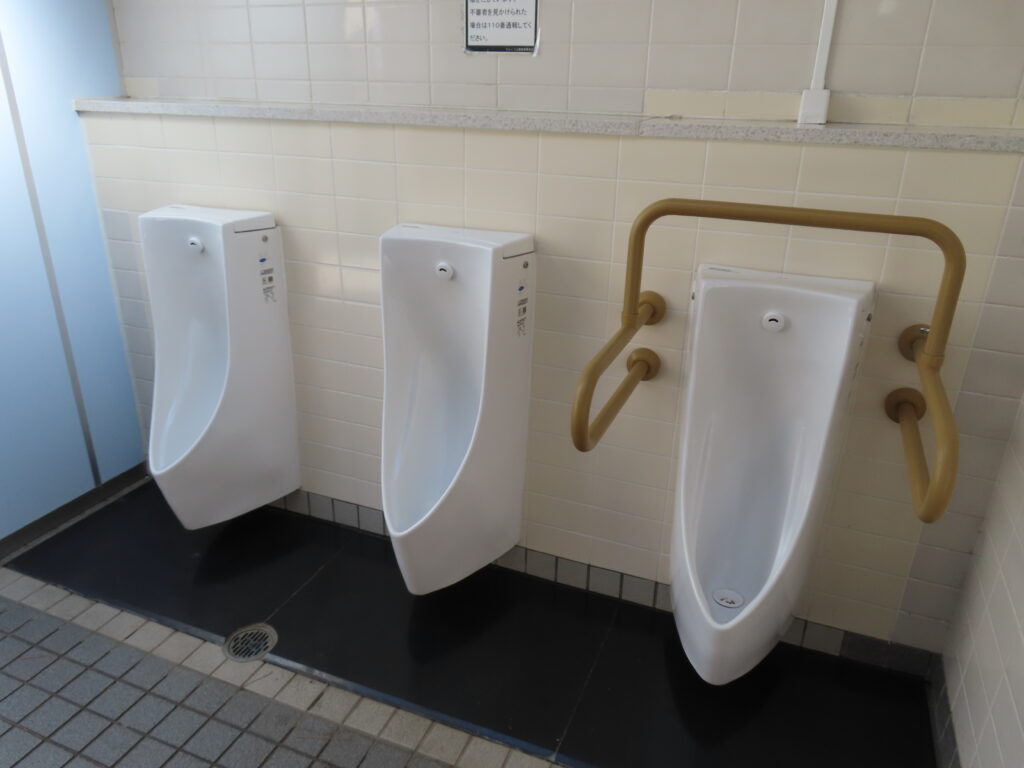 最初は外観と男性用トイレの比較的新しい器具を見て最近できたトイレなのかと思ってしまいましたが、多機能トイレを見て意外と古かったことに気づきました(男性用トイレもよく見れば小便器や大便器周りのタイルが貼り変えられていますし)。